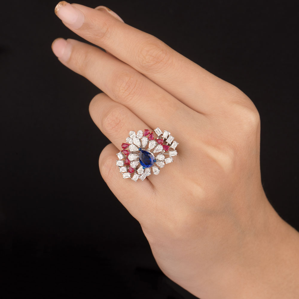 Gemstone Rings – 14K White Gold | Gharenu GH004RNGNDP447150(R-B)