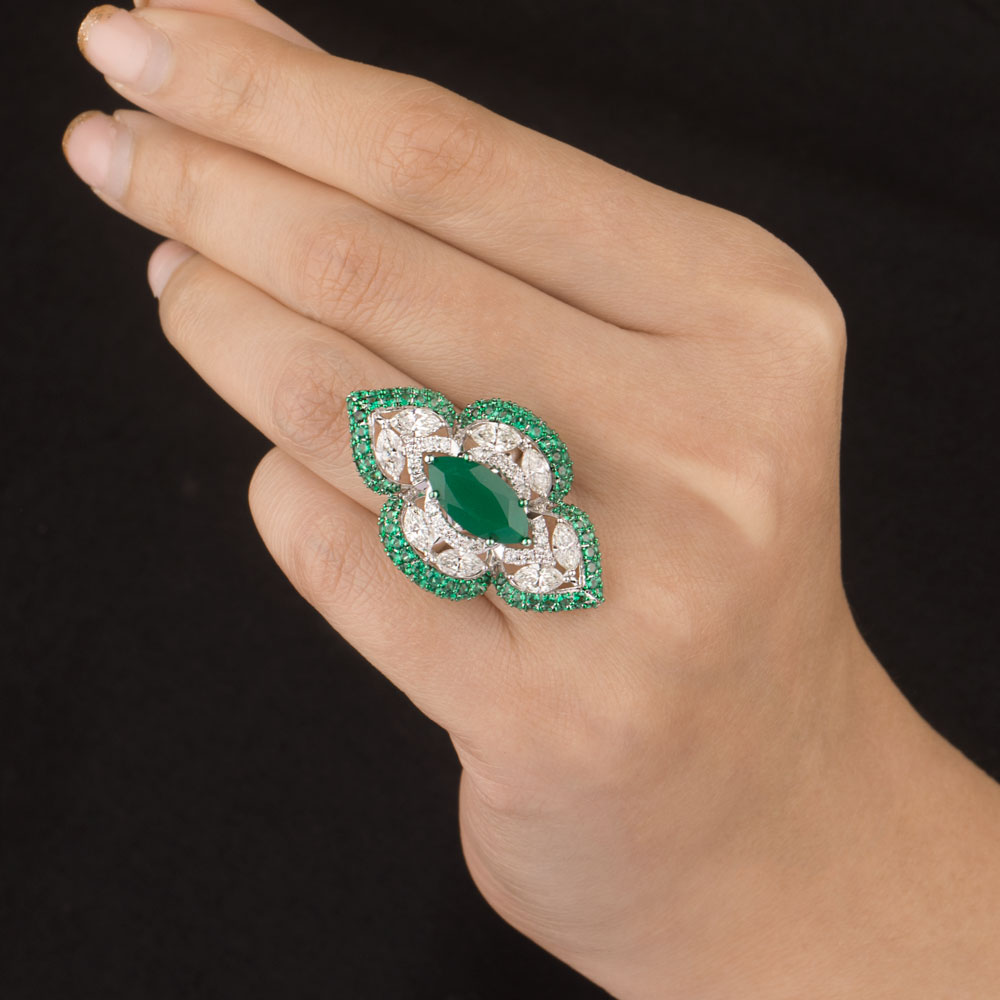 Gemstone Rings – 14K White Gold | Gharenu GH062RNGTRL-2791(E)