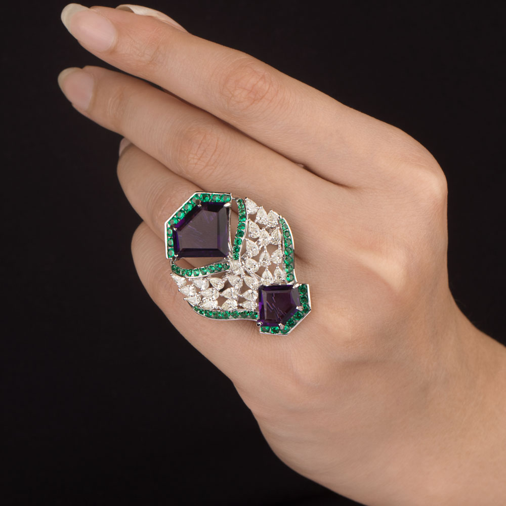Gemstone Rings – 14K White Gold | Gharenu GH062RNGTRL-3011(AT-E)