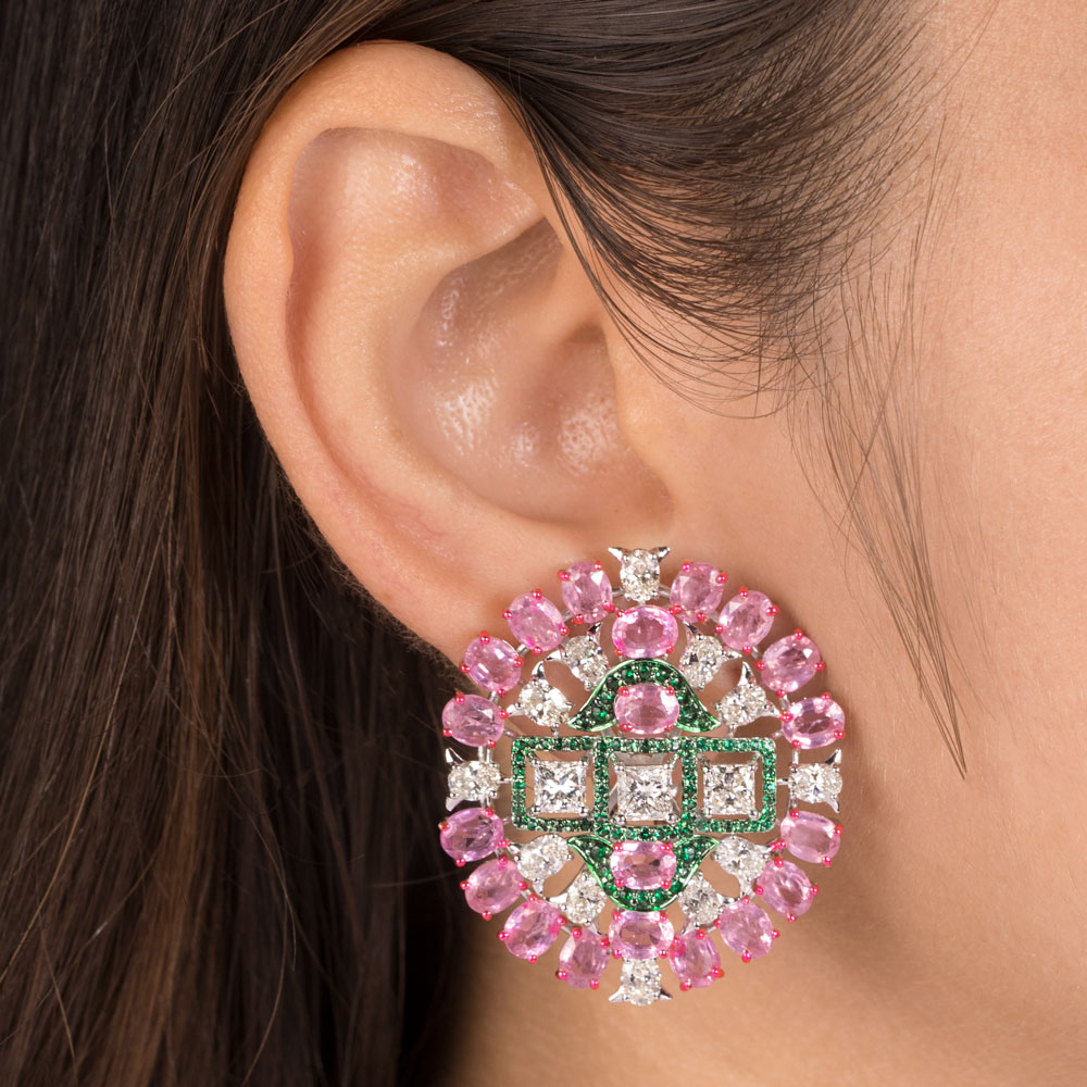 Gemstone Earrings – 14K White Gold | Gharenu GH081NEER0418(E-PK)