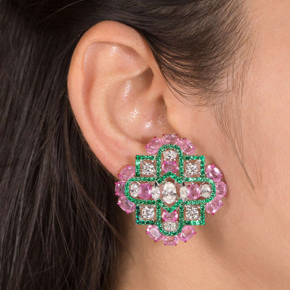 Gemstone Earrings – 14K White Gold | Gharenu GH081NEER0428(E-PK)