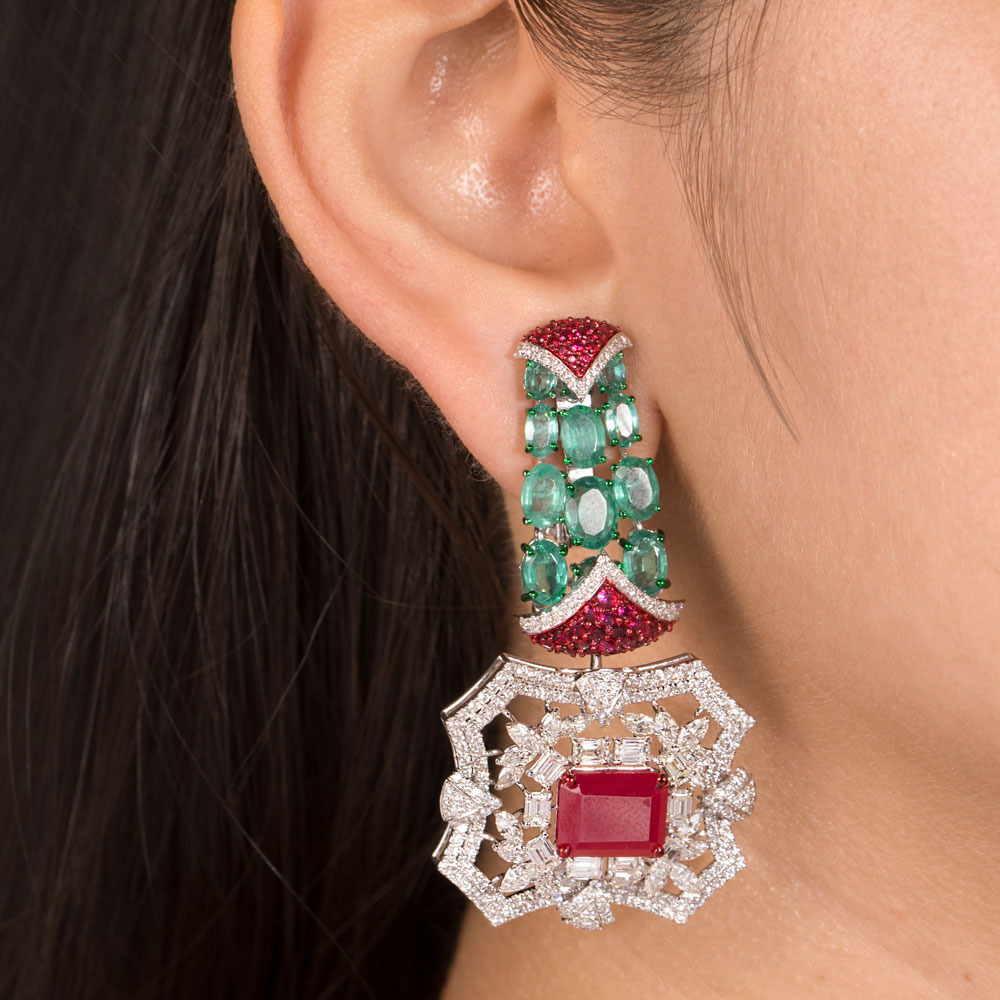 Gemstone Earrings – 14K White Gold | Gharenu GH081NEER0429(R-E)